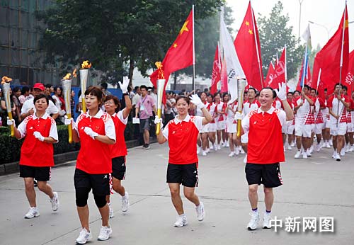 中新網(wǎng)石家莊8月18日電 (記者 牛琳) 18日上午,河北省會石家莊市世紀公園中心廣場歌舞歡騰,人們用喧天地鑼鼓迎接第十一屆全運會火炬的到來。