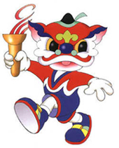 會(huì)徽:會(huì)徽中間豐滿,兩端漸細(xì)的曲線給人無(wú)限的延伸感,配合傾斜的線條,更顯奔騰飛躍之意。對(duì)比鮮明的紅、黃、藍(lán)三色,對(duì)視覺有強(qiáng)烈的沖擊力。造型灑脫地色勒出一個(gè)“9”,既直接傳達(dá)了九運(yùn)會(huì)的信息,又宛如一位矯健、充滿活力、奮發(fā)向上的運(yùn)動(dòng)員,豪邁跨入新世紀(jì)。