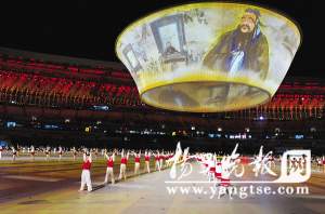 在預(yù)演現(xiàn)場(chǎng),宏大的聲勢(shì)和“道具”令人震撼。就像北京奧運(yùn)會(huì)開幕式用極具中國(guó)特色的畫卷作為核心道具展示古老神秘的東方文化,本次全運(yùn)會(huì)上有一個(gè)特別作品,那就是一個(gè)巨型的碗狀帷幕。在晚間預(yù)演中,這個(gè)直徑大約有50米的“巨碗”從地面上緩緩升起,懸空而置。形成了一個(gè)類似巨型背投的裝置。隨著地面上節(jié)目的不斷變化,投射在“碗”幕上的影像也會(huì)不斷變換,制造強(qiáng)烈的視覺(jué)沖擊。