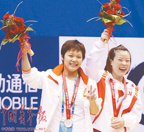 “陳燮霞是因傷退賽!币幻门性谫惽敖忉屨f,“缺席這次決賽的兩名選手都是因為傷病。”事實上,王明娟和楊煉都不認(rèn)為陳燮霞參賽會對自己產(chǎn)生多大影響。王明娟用“天道酬勤”4個字來概括自己再次獲得全運會冠軍的感受:“2001年九運會我就拿了冠軍,但是因為受傷,錯過了兩屆奧運會,我為此流的汗水和淚水都數(shù)不清了。上屆全運會我連成績都沒有,這次能夠重新拿到冠軍,我要感謝很多人,沒有他們的鼓勵,我一個人堅持不下來。”