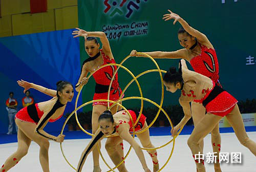 中新網(wǎng)德州10月20日電(記者 張春法 尹傳偉)在今晚舉行的中國(guó)十一運(yùn)會(huì)藝術(shù)體操集體全能項(xiàng)目比賽中,由奧運(yùn)會(huì)名將章碩、孫丹、侴陶、隋建爽領(lǐng)銜的遼寧藝術(shù)體操隊(duì)近乎完美的表現(xiàn)技?jí)喝悍迹?0.300的高分奪得本屆全運(yùn)會(huì)藝術(shù)體操項(xiàng)目含金量最高的一枚金牌——集體全能冠軍;四川隊(duì)和上海隊(duì)獲得藝術(shù)體操銀牌和銅牌。至此,十一運(yùn)會(huì)藝術(shù)體操比賽完美落幕。