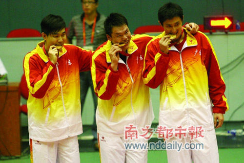 而就在大約三個(gè)小時(shí)前,本屆全運(yùn)會(huì)最后也是最重的一金被廣東代表團(tuán)收入囊中,男子籃球隊(duì)在決賽中81比76力克東道主山東,為廣東奪得全運(yùn)會(huì)歷史上的首個(gè)男籃冠軍。聯(lián)賽MVP朱芳雨以40分成為這枚金牌的首功之臣。另外衛(wèi)冕冠軍解放軍隊(duì)在三四名決賽中103比94擊敗江蘇,收獲1枚銅牌。 特派記者 劉皓(本報(bào)濟(jì)南電)