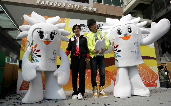 兩個吉祥物設(shè)計以火和獅子為創(chuàng)作元素,展現(xiàn)了香港人自強不息、同處“獅子山下”的拼搏互助精神。吉祥物的設(shè)計師毛沛畿和梁伯強表示,“東仔”和“亞妹”的頭發(fā)象征火焰,代表香港人的活力,身上的煙花斑紋與2009年東亞運動會會徽相呼應(yīng),綻放出奧運五環(huán)的顏色,代表著發(fā)揚體育精神。