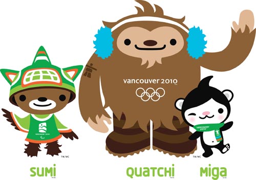 冬奧會(huì)的吉祥物是名叫“米加”的北極熊和名叫“魁特奇”的北美野人,而冬季殘奧會(huì)的吉祥物則是名叫蘇米的雷鳥精靈。