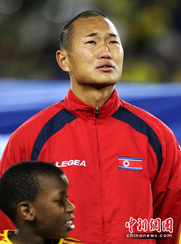 中新網(wǎng)6月16日電 北京時(shí)間16日凌晨,闊別世界杯舞臺(tái)44年之久的朝鮮隊(duì)重返這個(gè)足球的最高舞臺(tái),與小組賽首個(gè)對(duì)手巴西隊(duì)狹路相逢,展開一場(chǎng)頂級(jí)對(duì)決。比賽中,有著“人民的魯尼”之稱的鄭大世表現(xiàn)搶眼,成為巴西隊(duì)重點(diǎn)“砍殺”的對(duì)象。而鄭大世聽到朝鮮國歌響起時(shí)的淚流滿面,以及在比賽中受傷后帶傷浴血奮戰(zhàn),讓人動(dòng)容。