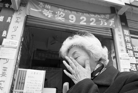 前晚24時(shí),省體彩中心宣布922萬(wàn)元大獎(jiǎng)被棄領(lǐng),這起事件本已塵埃落定,但昨日事情又出現(xiàn)波折:盡管手上沒(méi)有中獎(jiǎng)的那張彩票,也記不清楚中間的幾位數(shù)字,滿頭銀發(fā)的胡慧瓊昨日中午依然第3次來(lái)到都江堰景環(huán)路277號(hào)體彩銷(xiāo)售點(diǎn),她堅(jiān)信自己就是那位922萬(wàn)元大獎(jiǎng)的得主。