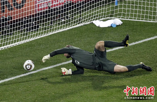 中新網6月13日電(盧巖) 在今天凌晨進行的一場世界杯小組賽上,英格蘭隊以1-1戰(zhàn)平美國。在這場稱不上精彩的比賽中的一大亮點,就是作為英格蘭門將的格林在上半場臨近結束前的一次拙劣表演。正是他的超低級失誤導致美國隊扳平比分,而在歷史上,英格蘭隊也一直被“門將夢魘”籠罩。
