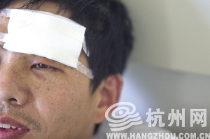 這起事件,最初是一起出租車司機(jī)與乘客之間的駕乘糾紛,拳頭最先是打在梁師傅身上。梁師傅名梁珍極,35歲,甘肅人,2003年開始在杭州開出租車,1月17日下午3點(diǎn)左右,梁師傅在文三路載了一男一女兩名乘客,“兩個(gè)人都很年輕,個(gè)子都很高,蠻瘦的,年紀(jì)都在20歲出頭。男的個(gè)頭有1米9吧,穿了件灰色的運(yùn)動(dòng)服。女的穿了件黑色的衣服,他們上車后,讓我去西城廣場(chǎng)。我就往前開。開到西城廣場(chǎng)那邊一條小路,男的讓我右轉(zhuǎn)彎,那條路上有個(gè)禁止右轉(zhuǎn)彎的標(biāo)志,我說這里不能開的,那個(gè)男的嘴上就罵罵咧咧了,聽他們的口音像是東北的。后來,那個(gè)男的突然發(fā)怒了,下了車,拉開我的車門,把我拖出來就打,邊上很多人看到了,幫我報(bào)警,那個(gè)女的拉著那個(gè)男的,說不要打了,就打算走。我說你們不能就這么走了。這時(shí)候那個(gè)女的就在我的手里塞了100塊錢,讓我去醫(yī)院。我說這點(diǎn)錢哪夠上醫(yī)院的?”