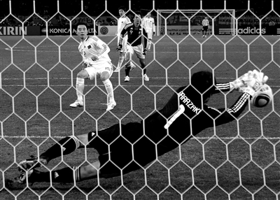 易邊再戰(zhàn),日本隊(duì)加強(qiáng)進(jìn)攻,一度占據(jù)優(yōu)勢。第54分鐘,內(nèi)田篤人禁區(qū)內(nèi)右側(cè)勁射,皮球擊中立柱后彈在楊智手里。1分鐘后,榮昊左側(cè)下底快速傳中,在中國隊(duì)搶點(diǎn)壓力下,中澤佑二飛身救險(xiǎn)和門將酋崎正剛彼此干擾,皮球反彈向空門,田中斗笠王在門線前解圍。第81分鐘,姜寧左路形成傳中,日本隊(duì)球員禁區(qū)內(nèi)手球犯規(guī),可惜楊昊打出力道不大的半高球,被酋崎正剛將點(diǎn)球撲出。最終在凜冽的寒風(fēng)中,雙方0比0戰(zhàn)成平手。整場比賽,國足打出了久違的精氣神,多次贏得現(xiàn)場中國球迷掌聲。