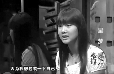 母親是下崗工人,父親是普通職員,她曾想通過相親節(jié)目《非誠(chéng)勿擾》(高清在線觀看)、《為愛向前沖》等成名。波普藝術(shù)倡導(dǎo)者安迪·沃霍爾曾說過一句名言:“在未來,每個(gè)人都有成名15分鐘的機(jī)會(huì)!比欢鵀榱诉@成名的15分鐘的機(jī)會(huì),19歲的少女小曼(化名)不僅參加了超過百場(chǎng)的選秀,甚至還想通過參加與自己年齡并不相符的相親節(jié)目出名。