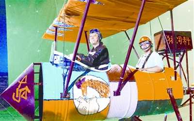 爆笑賀歲喜劇《高興》近日曝光了一組巨“!钡膭≌铡患苡善沏~爛鐵組裝的“鐵公雞”號山寨版飛機(jī),并由身著專業(yè)航空服的男主角郭濤駕駛,身后則是頭戴建筑安全帽的旅客馮瓅,十足的山寨版“萊特兄弟”的派頭。