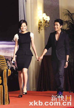 發(fā)布會(huì)一開始,牽手出場(chǎng)的趙薇和陳坤就很默契地“控訴”導(dǎo)演,一邊帶大家到各處去吃好吃的東西,一邊勒令兩個(gè)人減肥,因?yàn)閺能姷娜硕家容^瘦。之后,趙薇透露其實(shí)是陳坤挑自己來演花木蘭的,對(duì)此,陳坤也進(jìn)行了證實(shí)。