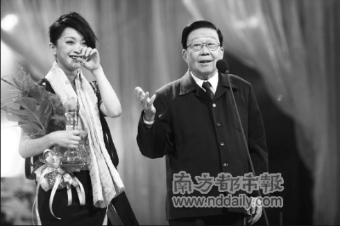 2008年度影視頒獎(jiǎng)盛典7日晚揭曉,周迅的恩師謝鐵驪導(dǎo)演親自為她頒獎(jiǎng),讓周迅不禁激動(dòng)落淚:“沒有謝導(dǎo)就沒有今天的我。”(見上圖)當(dāng)宣布邀請(qǐng)謝鐵驪導(dǎo)演登臺(tái)頒獎(jiǎng)時(shí),原本在臺(tái)上的周迅立即沖下去,走到觀眾席親自攙扶謝導(dǎo)走上舞臺(tái)。18年前周迅在銀幕處女作《古墓荒齋》,正是出自謝鐵驪導(dǎo)演之手。此番再次會(huì)面,讓兩人都是感慨不已。