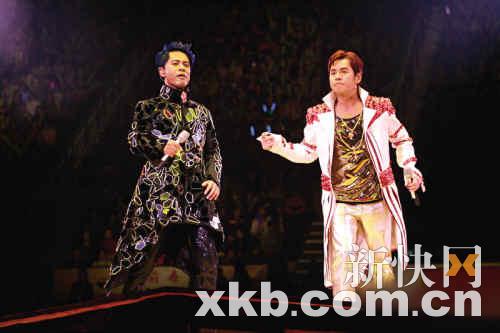 據(jù)香港媒體報(bào)道,譚詠麟、李克勤一連12場的“2009東亞運(yùn)動會左麟右李演唱會”2月1日晚在香港紅館揭開序幕,成為紅館裝修重開后頭炮演唱會的歌手,吸引了不少嘉賓捧場,除阿倫母親、克勤與太太盧淑儀的父母外,還有霍震霆、民政事務(wù)局局長曾德成等。瘦身成功的“左麟右李”分別大秀健碩手臂及胸肌,令歌迷尖叫。阿倫更拿出金色斜袋邊唱邊狂收紅包,高興得連歌都忘了唱,相當(dāng)搞笑。