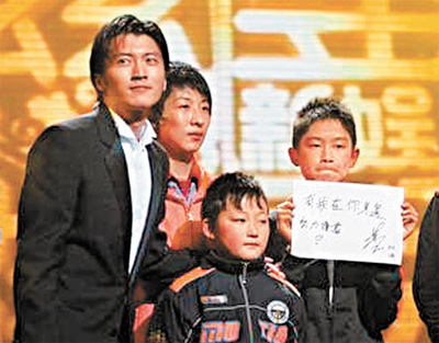 霆鋒多年來一直資助50名內(nèi)地失學(xué)兒童,前晚大會(huì)安排頒獎(jiǎng)給霆鋒的5名兒童,皆來自四川地震災(zāi)區(qū)都江堰,且全是由霆鋒資助上學(xué)。近一年來備受家事困擾的霆鋒,首次見到自己捐助的小孩,頓時(shí)百感交集,他緊緊地抱住這些小朋友,然后眼濕濕哽咽說:“每當(dāng)我拍戲受傷或者心情低落時(shí),我就會(huì)想自己不能倒下,可能有50個(gè)家庭靠我給他們一頓飯吃。因?yàn)檎J(rèn)識了他們,我才知道自己有多幸運(yùn),同樣是黃種人,為什么謝霆鋒可以追逐自己的夢想,他們卻沒有這個(gè)機(jī)會(huì)!弊詈笏膭(lì)小朋友說:“叔叔不怕痛和累,你們也不能放棄!