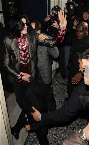 宣布要回歸歌壇,進(jìn)行最后的演唱的天王邁克爾·杰克遜,3月7日帶著自己的兒子一起現(xiàn)身英國(guó)倫敦的 Royal Theatre 觀看音樂(lè)劇,引發(fā)了歌迷們的追蹤狂潮,邁克爾·杰克遜也不愧為見(jiàn)過(guò)大場(chǎng)面的人物,不時(shí)的向歌迷揮手并拋去飛吻。