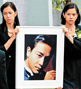35,2003年4月1日下午4時(shí)30分,哥哥獨(dú)自到中環(huán)文華酒店的24樓會(huì)所,點(diǎn)了飲品及香煙獨(dú)坐。及后步出露臺(tái),寫(xiě)下遺書(shū)后,于傍晚6時(shí)41分一躍而下,結(jié)束璀璨一生。