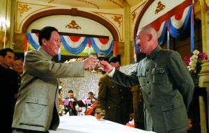 雖只有一場(chǎng)戲、三句臺(tái)詞,但身著深藍(lán)色軍裝的李連杰依然一絲不茍地拍了不下5條。據(jù)李連杰介紹,他扮演的陳紹寬原是國民黨海軍上將,在抗日戰(zhàn)爭(zhēng)中立下汗馬功勞,但不愿參加內(nèi)戰(zhàn),“中國人打中國人?這事我做不得”,最后向蔣介石遞交辭呈,“卸甲歸田,回福建養(yǎng)老去”。李連杰片酬高達(dá)上千萬美元,但零片酬參與該片一方面是感謝中影集團(tuán)長期對(duì)壹基金的支持,另外一方面他也認(rèn)為“陳紹寬反戰(zhàn)挺像我的,我也是個(gè)愛好和平的人!绷硗猓透露《建國大業(yè)》上映后,每張電影票將有1分錢進(jìn)入壹基金。