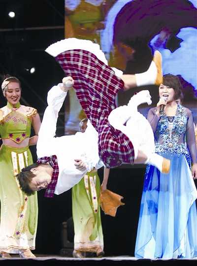 小沈陽(yáng)人氣非常之高,現(xiàn)場(chǎng)上座率達(dá)到9成,連兩側(cè)看不到舞臺(tái)的地方都坐滿了人。主辦方透露,小沈陽(yáng)的票出了8成之多,這在以往實(shí)屬罕見(jiàn)。大部分的觀眾都沖著小沈陽(yáng)而來(lái),前面1個(gè)半小時(shí)的表演里,大家雖然笑是笑,但是只有小沈陽(yáng)走到舞臺(tái)上時(shí),全場(chǎng)氣氛才為之沸騰。有粉絲上臺(tái)去獻(xiàn)花、強(qiáng)吻小沈陽(yáng),這可都是別的演員享受不到的待遇哦!老實(shí)說(shuō),小沈陽(yáng)表演的確很賣力,不管是吼《死了都要愛(ài)》還是唱《大海》甚至是表演《明星與粉絲》的段落,但是在側(cè)面觀看小沈陽(yáng)的表情時(shí),記者幾次都發(fā)現(xiàn)他在拼命的眨眼睛,似乎要趕走隨時(shí)而來(lái)的睡意。