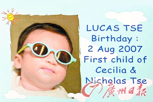 09年的愚人節(jié),張柏芝抱愛子追憶張國(guó)榮,悼念片段中更抱起Lucas出鏡,又兩度問兒子“這部戲誰(shuí)做呀?”,小Lucas響亮地答:“哥哥!”十分可愛。