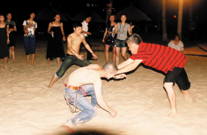 生活中的趙本山究竟是什么樣子,是小品《賣拐》中的大忽悠,還是電視劇《劉老根》中的睿智老漢?是電影《落葉歸根》中的質(zhì)樸農(nóng)民工,還是有著上億家產(chǎn)的娛樂巨鱷?雖然我們很難界定趙本山在演藝圈中的不同身份,但可以肯定的是,他在生活中和在舞臺上一樣,演繹著不同環(huán)境下的不同形象。日前,新報記者作為唯一隨行記者,見證了趙本山率“劉老根大舞臺笑轉(zhuǎn)2009”演出班底海南巡演的過程,感受到感性真實的“多面本山”。