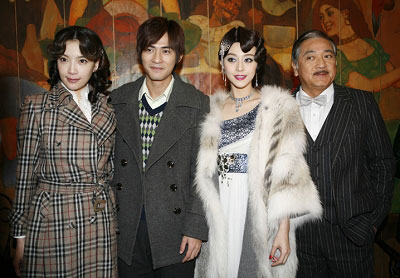 范冰冰擔任制片人的第二部電視劇《金大班的最后一夜》正在上海熱拍,劇組昨日在楊浦區(qū)的一棟洋房內組織媒體探班,范冰冰偕男主角周渝民、方中信、黃少祺、秦沛等以劇中造型出現在媒體面前。在采訪中,老板兼演員的范冰冰以及首次出演年代戲的仔仔周渝民成為媒體關注的焦點,兩人表現出“相見恨晚”的樣子,難怪仔仔最后被問到是否會與大S復和的消息,仔仔很肯定地說:“沒有”。