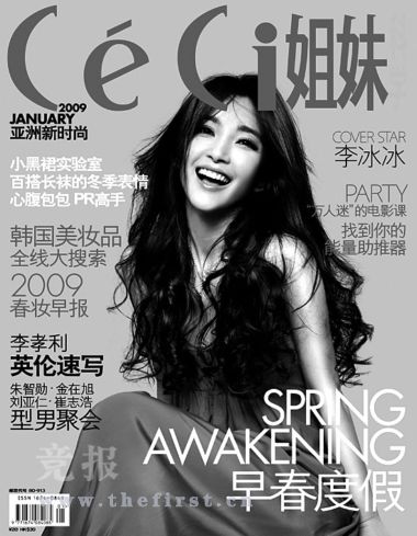 韓國(guó)一 線(xiàn)雜 志《CeCi》(中文版)的1月封面刊登了“中韓兩國(guó)文化交流大使”李冰冰的照片,李冰冰也成為亞洲首位登上該雜志封面的中國(guó)面孔。