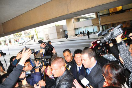 陳冠希在經(jīng)理人陪同下,抵達(dá)溫哥華高等法院應(yīng)訊,經(jīng)理人表示,原先法庭考慮陳冠希的安全,計(jì)劃安排他在停車場(chǎng)直接進(jìn)入法庭,不過(guò)經(jīng)與陳冠希商量后,決定由正門進(jìn)入,以顯示陳對(duì)此宗案件坦然面對(duì)。