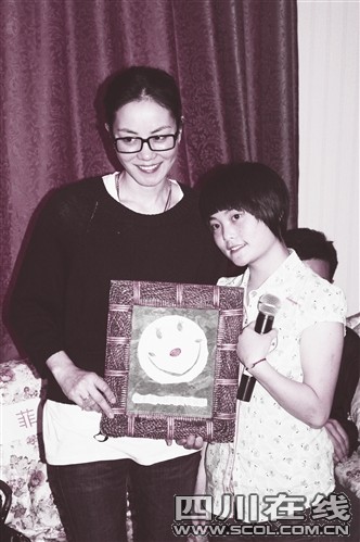 而另一名在地震中腦部受傷的小朋友王麗,還為王菲送上了自己編織的兩個“水晶”蘋果,并唱了一首《一千零一夜》,雖然有些走音,但王菲一直用微笑鼓勵她,李亞鵬還摸著王麗的頭,讓她以后好好唱歌,爭取當(dāng)歌星。