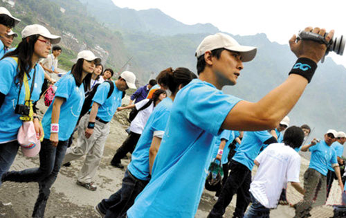 到了牛眠溝終點(diǎn)后,眾明星紛紛跟隨李連杰登上之前已搭好的舞臺(tái),完成最后的儀式。來(lái)自映秀的羌族婦女為李連杰掛上了蘊(yùn)含著祝福之意的羌紅。這時(shí),主持人宣布當(dāng)天共有一百萬(wàn)網(wǎng)民通過(guò)網(wǎng)絡(luò)進(jìn)行了虛擬行走,以此支持“壹家人,壹起走”活動(dòng),并現(xiàn)場(chǎng)成立了“志愿聯(lián)盟”。最后,在李連杰的帶領(lǐng)下,全場(chǎng)200多人默哀一分鐘,以表示對(duì)逝者的懷念。(王尚)