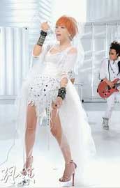 阿妹解釋因?yàn)樾那榕d奮,進(jìn)食后又叫又跳所以反胃。她表示披上搖滾款式的婚紗最想嫁音樂漢子,她希望對(duì)日本X-Japan主唱Toshi說﹕“我要嫁給你!