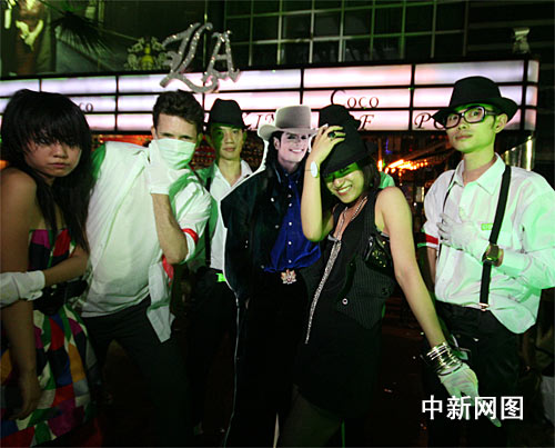 中新網(wǎng)7月7日電 流行樂(lè)壇天王邁克爾•杰克遜將于北京時(shí)間8日凌晨將在洛杉磯舉行公眾悼念活動(dòng),全球主要電視臺(tái)紛紛現(xiàn)場(chǎng)直播昨晚,中國(guó)的“杰克遜迷”齊聚北京著名的夜店,為杰克遜舉行音樂(lè)專場(chǎng)紀(jì)念活動(dòng),現(xiàn)場(chǎng)歌曲全部是杰克遜的成名作,不少外國(guó)人也加入到懷念杰克遜的隊(duì)伍中。