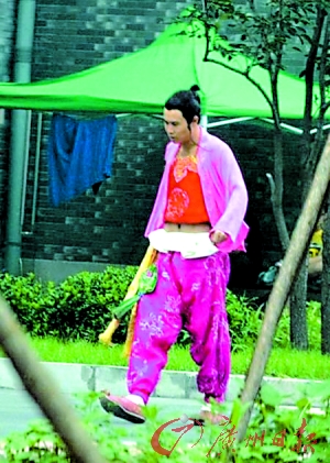 當(dāng)日,小沈陽在幾位工作人員的陪同下走出攝影棚。一身“紅妝” 的他,里面竟穿了一件露出肚臍的大紅肚兜。這身裝扮,看起來更像是表演東北二人轉(zhuǎn)!看來,在劇中負(fù)責(zé)搞笑的小沈陽,穿著打扮也跟以前的老本行相似,演起來應(yīng)該也會更加得心應(yīng)手。
