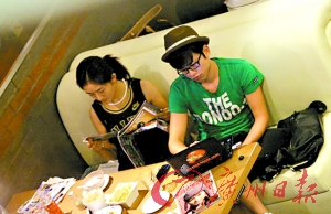 兩人用餐完畢,張杰已經(jīng)將一臺(tái)小巧的黑色上網(wǎng)本搬到桌子上并且自顧自地玩了起來(lái)。而一旁的謝娜則拿著一本港臺(tái)八卦雜志看得津津有味。兩人一副互不搭理的表情,實(shí)在看不出是一對(duì)情侶。不過(guò)沒(méi)多久,正在上網(wǎng)的張杰不知道看到了什么好玩的東西,先是自己笑了起來(lái),然后馬上碰了一下謝娜讓其一起觀看。而一向愛(ài)笑的謝娜剛看了電腦沒(méi)幾秒鐘就已經(jīng)笑得倚在了張杰的身上,兩人嘻嘻哈哈了好一會(huì)兒才慢慢回過(guò)神來(lái)。離開(kāi)前,謝娜不知何故先走出餐廳在馬路邊上四處看了一圈又返回。沒(méi)多久,謝娜再次與張杰一起出現(xiàn)并且同車(chē)離開(kāi)。 (魚(yú))