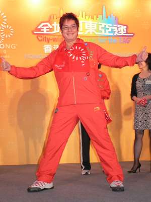 中新網(wǎng)12月1日電 譚詠麟昨日以一身紅裝及染紅發(fā)出席迎接?xùn)|亞運(yùn)動(dòng)會(huì)的活動(dòng),譚詠麟不僅在活動(dòng)中透露兒子曉風(fēng)愛(ài)打籃球外,還對(duì)時(shí)下的娛樂(lè)熱點(diǎn)進(jìn)行點(diǎn)評(píng),更自曝曾遭女歌迷“胸襲”。