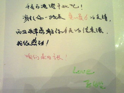 博文中,姚晨還貼上了一張小卡片,這張卡片是章子怡在《非常完美》電影首映結束后,用三種顏色給她寫的一張卡片。卡片一出就立即遭到了網(wǎng)友們的瘋狂拍磚,因為章子怡的字“實在讓人不敢恭維”。(新快報)