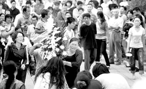 昨日20時(shí)20分,工作人員陸續(xù)離開,仍有百余名觀眾不肯離去。