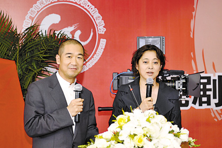 昨天的成立大會更像是一場眾導(dǎo)演的聚會,不少人都身穿便服到場,而主持人倪萍和張國立更是大搞冷幽默。倪萍先把“矛頭”對準(zhǔn)央視:“中央臺影視部的汪國輝主任,你們最招人恨了。到底什么樣的戲能上你們央視呀?今天倒是講講清楚!”接著她話鋒一轉(zhuǎn),又把責(zé)任推給張國立:“這事跟我沒關(guān)系,是張國立教我說的!北弧跋莺Α钡膹垏⒅缓酶尚陕。會場氣氛分外輕松。