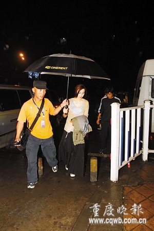 范冰冰遭“劫持”了,英雄救美的則是張嘉譯!前晚,電影《日照重慶》通宵趕工,在龍湖某超市拍攝了范冰冰此次離渝前的最后一場(chǎng)戲。由于深夜人煙稀少,坐著一輛別克車前來(lái)趕戲的范冰冰,悠然地走起了大馬路。面對(duì)記者的鏡頭,主動(dòng)撥開(kāi)了工作人員布置的“傘陣”,也讓其在該片中的造型得以首次曝光。