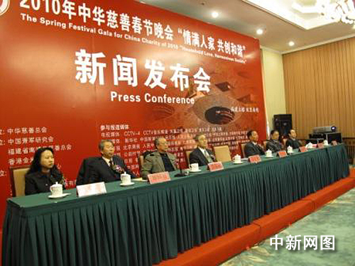 中新網(wǎng)12月3日電 今天,由中華慈善總會(huì)主辦的“情滿人家 共創(chuàng)和諧”2010年中華慈善春節(jié)晚會(huì)新聞發(fā)布會(huì)在北京舉行。中華慈善總會(huì)會(huì)長范寶俊,副秘書長麻貴林等出席了發(fā)布會(huì),對(duì)虎年的慈善春晚做了介紹。各種形式的春晚每年都是老百姓過年的重頭戲,和其他以娛樂百姓為主的春節(jié)晚會(huì)相比,慈善春晚的主題性更為明顯。整臺(tái)晚會(huì)主打情感牌,以情動(dòng)人。在為觀眾獻(xiàn)上精彩演出的同時(shí),還將表彰在過去一年里對(duì)慈善做出貢獻(xiàn)的個(gè)人和單位。