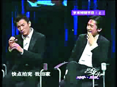 當(dāng)梁朝偉一上場(chǎng),朱軍便說(shuō):“上次錄《無(wú)間道》時(shí)你和劉德華一起欺負(fù)我,這次就你一個(gè)人,我終于可以報(bào)仇了!倍撼瘋t很不解地說(shuō):“上次是你欺負(fù)我們吧!