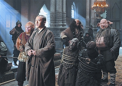 這邊浙版《西游記》在各大衛(wèi)視邊播邊被罵,另一邊張紀(jì)中版《西游記》則在北京拍攝正酣。與好萊塢合作的演員造型,一直是張紀(jì)中版《西游記》最大的噱頭:戴斗笠的唐僧、身著虎皮裝的悟空、腆著大肚雷人“豬”相的八戒,還有脖子上掛著大串佛珠任勞任怨的沙僧,這次從劇組曝光的一批高清劇照來看,四位主演的造型竟得到不少網(wǎng)友好評。