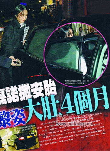 為生仔改名“黎珈而”的黎姿自成功“加兒”后,一直安心養(yǎng)胎甚少露面。昨日新上市的《壹周刊》又爆新料,雖然大部分時間都留家安胎,不過一向幫忙打理弟弟黎嬰美容診所生意的黎姿上月底也現(xiàn)身視察公司事務,全程都由司機接載。一身黑色長外套裹住的黎姿,在上車一刻因外套揚起露出白色打底衫,四個月的“大肚照”終掩不住,曝光了!而一向對黎姿疼愛有加的馬廷強,聽說自老婆懷孕后也變成緊張大師,減少出外應酬抽更多時間陪黎姿在家安胎。