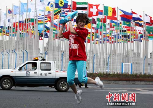 中新網(wǎng)5月7日電 5月6日,演員、歌手金巧巧輕裝來到上海,搭上2010上海世博會(huì)首周游覽的末班車。此行,金巧巧很是悠閑自得,隨行僅一名助理,在接受媒體采訪時(shí)她說,“北京在一場大雨之后天氣熱了好多,沒想到上海更是熱得不行!