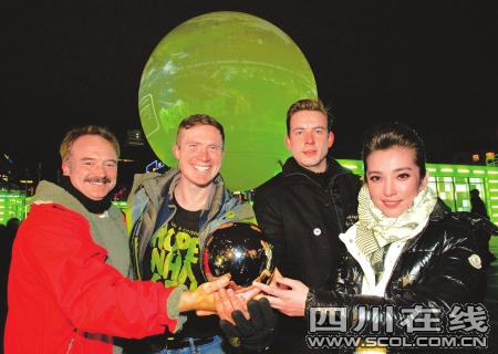 頒獎儀式開始前,頒獎臺上的大屏幕赫然映著一棵干枯的大樹。音樂響起,中國著名演員李冰冰手捧一個“地球”緩緩走向頒獎臺,然后輕輕將“地球”放下。她的舉動告訴人們,地球是人類的家園,需要人類共同呵護(hù)。