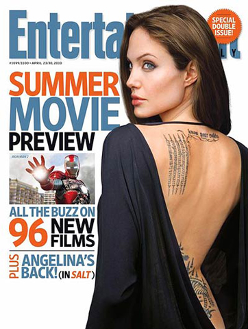 安吉麗娜-朱莉登上了最新一期的《娛樂(lè)周刊》雜志,封面上的她大秀美背,后背上的精致文身更添性感。34歲的朱莉接受了該雜志的采訪: