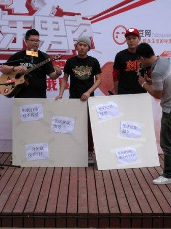 今年快男注定與眾不同,不僅“偽娘”選手備受關(guān)注,而且連“反偽娘”選手也不失風采,上周快男土豆網(wǎng)分賽區(qū)一組特殊選手C-BLOCK組合因在比賽現(xiàn)場打出 “保護純爺們 消滅偽娘族”的參賽口號,而備受網(wǎng)友關(guān)注并被封為“反偽娘斗士”,而有關(guān)這場“偽娘”與“反偽娘”的對決,昨日舞美師在博客爆出猛料:“著姐入圍前三甲不是問題,首先是因為吸引眼球的需要,這也是湖南衛(wèi)視選秀常用手段;不僅如此,劉著也已經(jīng)秘密簽約湖南衛(wèi)視旗下長沙天娛公司”。而針對舞美師的爆料內(nèi)容,記者也從網(wǎng)上了解到該組合相關(guān)資料,首先該C-BLOCK組合來自長沙,在當?shù)匾恢毙∮忻麣猓瑢嵙Σ凰,去年多次參加湖南衛(wèi)視王牌節(jié)目《快樂大本營》、《成年禮》、《8090》等節(jié)目,而關(guān)于“偽娘”劉著網(wǎng)上開始有人爆出其與湖南衛(wèi)視關(guān)系甚密,這些相關(guān)信息與舞美師爆料內(nèi)容十分契合。為進一步求證舞美師的爆料內(nèi)容,記者向湖南衛(wèi)視快男導演組一編導求證,他表示:“不要相信舞美師博客內(nèi)容,純屬造謠,快男比賽保證公平選拔”。 張 漪