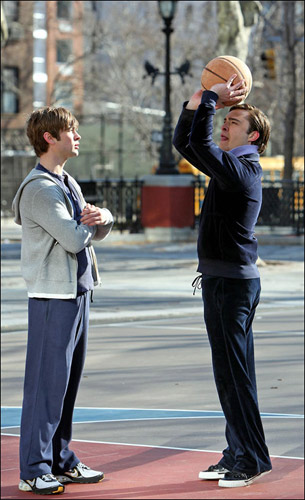 《緋聞女孩》的拍攝現(xiàn)場可以用熱鬧紛呈,比拼無極限來形容了,那邊女主角們比拼妝容,比拼服飾,拼的是火花四射,這邊的男主角們也不甘示弱,你們拼外在,我們拼實力, 這邊切斯·克勞福和艾德·維斯特維克比拼起了籃球技術(shù)。難怪《緋聞女孩》的收視率節(jié)節(jié)攀升,有競爭才能有收獲嘛。