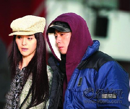 當(dāng)天《精舞門(mén)》的拍攝現(xiàn)場(chǎng)位于一座室內(nèi)籃球館內(nèi),范冰冰與陳小春飾演的“舞幫”帶頭人,為了向?qū)I(yè)級(jí)的街舞冠軍南賢俊挑戰(zhàn),領(lǐng)著徒弟前去向奧運(yùn)體操冠軍邢傲偉拜師學(xué)藝。一身嘻哈打扮的陳小春,為了抵御北京的嚴(yán)寒,把自己裹了個(gè)嚴(yán)嚴(yán)實(shí)實(shí);也許是劇情的需要,范冰冰則是一身摩登打扮,踩著高跟靴,似乎少了點(diǎn)街舞的嘻哈氣息。兩人并肩站在徒弟們身后,認(rèn)真領(lǐng)會(huì)“師傅”邢傲偉的一招一式。范冰冰與陳小春不時(shí)竊竊私語(yǔ),陳小春甚至把臉貼在范冰冰耳朵旁,不知道嘀咕什么,然后二人哈哈一笑,交談甚歡。范冰冰表示:“和小春哥拍戲是很愉快的事情,非常輕松,他還教了我?guī)讉(gè)街舞動(dòng)作!币慌缘年愋〈郝(tīng)到夸獎(jiǎng),故意抿著嘴,做出一副害羞的樣子,兩人一唱一和,氣氛頗為融洽。
