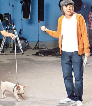 中新網(wǎng)3月3日電 日前,周星馳(星爺)秘密在香港為網(wǎng)絡游戲拍廣告片,平日星爺?shù)膹V告多有美女相伴,但這次只有小肥豬一只。而小肥豬拍攝期間又完全不受控制,要星爺施展渾身解數(shù)來逗它,大考星爺耐心。